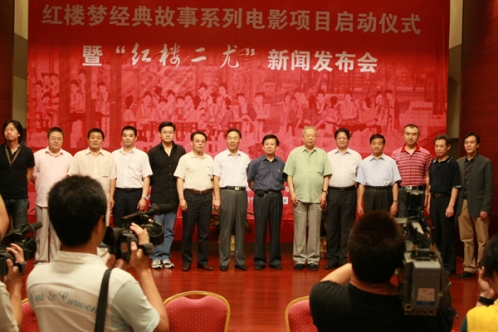 中新網6月29日電 由中國藝術研究院紅樓夢研究所、中國紅樓夢學會、萬眾盛世傳媒投資(北京)有限公司聯合主辦的“紅樓夢經典故事系列電影啟動儀式暨《紅樓二尤》新聞發布會”于6月29日在北京隆重舉行。中國文聯黨組成員、書記處書記白庚勝,中國電影家協會分黨組副書記、秘書長許柏林,中國藝術研究院副院長、中國紅樓夢學會會長張慶善,北京大學藝術學院常務副院長彭吉象,著名紅學家李希凡等眾多知名人士和全國60余家新聞媒體參加了發布會。發布會上,紅劇系列電影總制片人周代清介紹了紅樓夢經典故事系列電影項目內容,并表示首部影片《紅樓二尤》將于9月中上旬開機,預計2009年春節期間在各大影院與廣大觀眾見面。