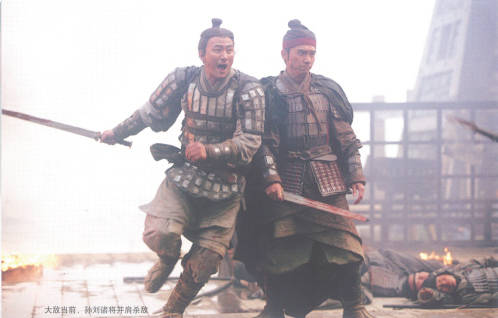 從記者的角度來看,戰爭場面的確比較血腥,殺戮鏡頭很多,而吳宇森風格的慢鏡頭和色彩運用則多少以“美感”中和了“暴力”。盡管是第一次拍古裝大片,但吳宇森充分消化了中國古代戰爭中的智慧:有點像當代團體操的八卦陣、破馬陣的狼牙棒、趙云的“空手套白狼”、張飛的獅吼、關羽的一夫當關,再加上搖著羽扇的諸葛亮和表情鎮定的周瑜穿插其中,極富節奏的鏡頭調度讓戰爭場面血肉豐滿。