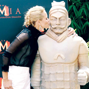 由李連杰、楊紫瓊等眾多華人影星參演的《木乃伊3:龍帝之墓》將于下周四(31日)在我國香港地區、新加坡和韓國上映,但內地觀眾則要到8月底才能有望一睹“龍帝”模樣。不過這并不影響該片在全球刮起一股“中國風”。本周一,《木乃伊3》主演布蘭登·弗萊澤、瑪麗亞·貝羅與兵馬俑出現在西班牙馬德里時,再度燃起人們對兵馬俑的好奇。