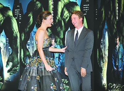 昨日,電影《神奇綠巨人》東京首映,女星麗芙·泰勒身穿炫花蓬蓬裙與男星愛德華·諾頓一起現身。