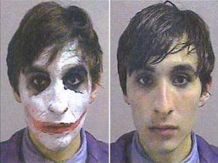 據臺灣“今日新聞”報道,嫌犯身穿電影中小丑的服裝,臉上也化成了JOKER的妝,跑到戲院外偷拔墻壁上的黑暗騎士海報,結果被巡邏的警察當場抓獲。