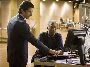 克里斯汀·貝爾和摩根·弗里曼。《蝙蝠俠》劇照。