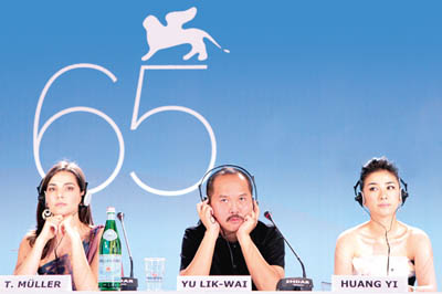 導演余力為(中)與兩個女主角在威尼斯現場。
