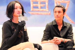 《畫皮》早前曝光了不少陳坤和趙薇的親密戲照片,昨日記者的問題基本都奔此而來。有人很直接問陳坤、周迅和趙薇:“你們三個有床戲,激烈嗎?”陳坤很尷尬地回答說:“導演的要求嘛。”由于主演中只有陳坤一人看過電影。所以趙薇很吃驚地問周迅:“你們也有床戲嗎?”周迅答:“我們沒有床戲,我們有水戲。”聽到此話,趙薇露出“放心”的神情說道:“我們作為夫妻,有這樣的戲也是正常的嘛。”