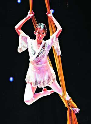 前晚她身負金馬獎開場重任,一出場唯美的火紅古裝令人驚艷。這是她首度在公開場合的獨唱表演,但娃娃音唱腔其實是事前配唱的成品,林志玲坦言壓力很大,加上是首次以電影人身分出席盛會,“希望大家仍會給我加油打氣。”《心戰》唱畢,她褪去紅衣,幻化成白天鵝舞出飛天秀,高難度技藝讓全場觀眾贊嘆,據說她為此苦練8天、每天8小時,加強肌肉耐力、克服恐懼。主辦單位特別為曾墜馬的她保了5000萬臺幣意外險,當晚她共“飛”了3次,前兩次沒鋼絲輔助,但這 “特技”與蔡依林的《特務J》“空中無重力彩帶舞”有些雷同。最后她再次搖身一變女戰士,拿著長槍和舞者對打,不過這段表演,略嫌花拳繡腿。