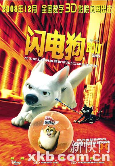 這部由全球動(dòng)畫(huà)巨頭迪士尼公司出品的動(dòng)畫(huà)片,講述的是一只名叫“波特”的可愛(ài)小狗在好萊塢片場(chǎng)飾演一只擁有超能力的閃電狗,波特不知道這是在拍電影,還以為自己真的具有超能力,直到它有一天來(lái)到了現(xiàn)實(shí)生活中,才發(fā)現(xiàn)自己只是一只普通的狗。《閃電狗》于11月21日在北美上映后,已經(jīng)取得了近1億美元的票房,并與《機(jī)器人總動(dòng)員》、《功夫熊貓》一起入圍了本年度金球獎(jiǎng)最佳動(dòng)畫(huà)片獎(jiǎng)提名。