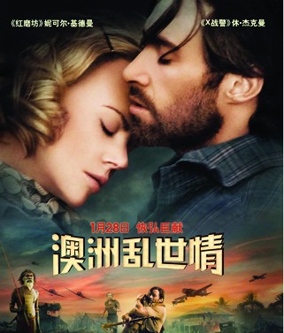 從澳大利亞進(jìn)口的分賬影片《澳洲亂世情》將于1月28日大年初三登陸國內(nèi)影院。該片是奧斯卡影后妮可·基德曼與性感男星休·杰克曼繼為動(dòng)畫片《快樂的大腳》配音后的第二次合作。