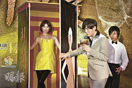 據香港《明報》報道,周杰倫在記者會上化身魔術師,變出女主角林志玲。有質疑林志玲比周杰倫高,穿上平底鞋的林志玲讓大家來量度高度,原來周杰倫比林志玲高0.5公分,她笑說:“周杰倫是我拍電影以來最高的男主角。”兩人互賣口乖,指對方是心目中最好條件的異性,林志玲形容周杰倫是才子,孝順之余更會變魔術,所以很期待合作;而周杰倫亦表示很期待與這位幾乎是所有男人的夢中情人合作,但他唯一要求女主角不能比他高,“幸好我比林志玲高”。