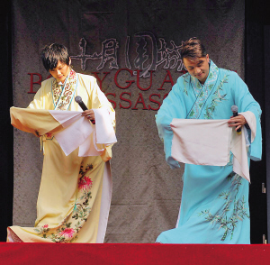 昨天下午,三山會館——上海現存最完整的一處晚清古建筑內,一位名伶正咿咿呀呀唱著京劇《穆桂英掛帥》,字正腔圓。不過在座諸人無心聽戲,眼光齊齊瞄向臺下正對名伶而立的一人。此人黑西裝、白襯衫、金領結,身為女兒身卻掩不住帥氣的天娛第一號人物——李宇春。