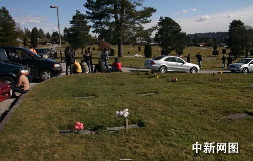 一批記者獲知鄭欣宜朋友的住處,又立刻驅(qū)車前往。而另外一些記者則繼續(xù)在墓園打“持久戰(zhàn)”,不等來鄭欣宜誓不罷休。記者們集中在殯儀館對面的停車區(qū),不是手持長短鏡頭,就是拿著麥克風(fēng),聲勢也算浩大。館內(nèi)中午時分正在舉行另一場悼念儀式,一些當(dāng)?shù)厝藖韥硗加煤闷娴难凵穸⒅奶帍埻挠浾邆儯恢腊l(fā)生了什么事。