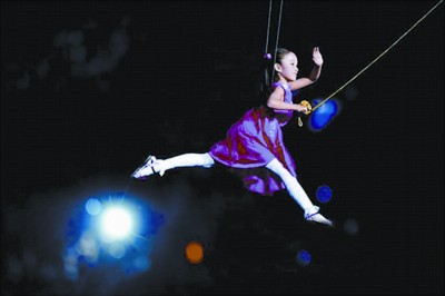 董爭臻介紹,今年3月,他接到張藝謀電話,說是打算由8名雜技演員在空中“飛翔”表演。于是他挑選了包括朱巧妍在內的10名演員進京。節目幾經變動,表演者由8人改為1人,朱巧妍和高浚慈保留到最后,只是沒確定誰是替補:“進京訓練2個多月來,巧巧每天都要吊著飛來飛去的,每次都要花費七八個小時,有時直到凌晨才結束,非常辛苦。但她的狀態一天比一天好。最后,她被定為主角,高浚慈是替補。”