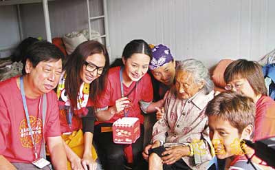 中新網9月15日電 早前承諾會前往四川地震災區進行慰問的鐘欣桐(阿嬌),于中秋節前兌現承諾,低調現身北川擂鼓鎮做義工,同行還有鄭希怡、李逸朗及英皇高層吳雨。今次活動中,阿嬌在擂鼓鎮參與了灌水泥、刷油漆等工作,14日晚還和好姐妹蔡卓妍(阿Sa)一起,與當地小朋友們一起過中秋。
