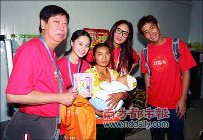 繼8月在杭州海寧主持開球禮后,阿嬌9月初即在一位女性助手的陪同下,與香港無國界義工組織一起前往四川慰問地震群眾,9月12日與當日抵達的英皇60名義工會合。