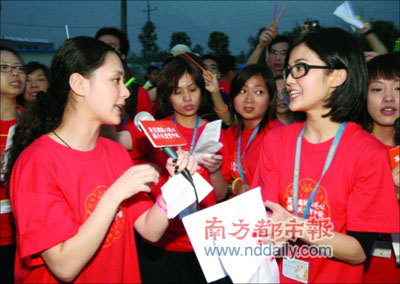 吳雨:我比她晚一個星期到,聽義工講她很努力,每天一早就出門,一直做到晚上。我們在那邊還做了一臺晚會,當地條件有限,沒有布景,沒有音響,沒有燈光,我們就掛了兩個燈籠,很原始,但是效果很好,居民很開心,小孩子跟我們一起唱歌,唱他們很熟的歌,好像《明天會更好》,我不準的歌手唱自己的歌。最后,我們都哭了。