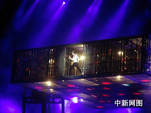 善以百變怪誕服飾出演個唱的郭富城,昨晚演唱會上每曲皆以不同演裝登場,三角背心、紅舞衣、紋身衣、陶瓷頭盔、透視裝等性感十足、熱力四射,征服了現(xiàn)場歌迷的眼球。此外,昨晚演唱會水元素的融入,似乎讓歌迷也看到了郭富城演唱風格中的剛中有柔,剛柔相濟;特制的舞臺上流水輕浪、水波潺潺,郭富城踏水而歌、踢水狂舞,“水花舞林”成了昨晚演唱會的一大亮點。