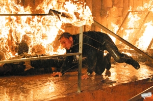 從《皇家賭場》開始,邦德再次回到寫實風格,克雷格回憶說《量子危機》里他跑到疲于奔命。影片的時長是所有邦德片中最短的,但動作戲卻兩倍于《皇家賭場》。四場打斗戲不容錯過,意大利的追逐、奧地利大眼睛劇院的群毆、巴拿馬夜宴的混戰及最后智利沙漠的終極PK。意大利追逐戲是現下非常流行的“跑酷”(Parkour)風格,需要克雷格在建筑物間靈敏穿梭,拍攝前兩個月的魔鬼訓練讓他身心俱疲。而克雷格覺得最困難的是一場船上打斗戲,因為船身搖晃,令他覺得如同坐過山車,拍得膽戰心驚,那場戲花了兩個星期才拍成。