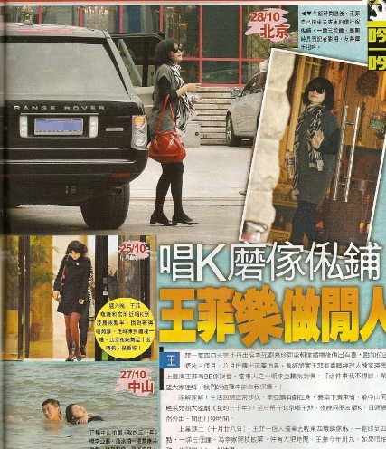 據(jù)報(bào)道,李亞鵬近期在廣東省與應(yīng)采兒拍電視劇《我的三十年》,留守北京的王菲,夜晚同朋友唱K,日頭偶然外出,閑逛打發(fā)時(shí)間。上星期二(十月廿八日),王菲一個(gè)人車去東四環(huán)看家俬,一點(diǎn)看到四點(diǎn),一看就看三個(gè)鐘。