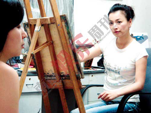 很快張庭就成為上師大美院的正式研究生,她那一屆只有她一個學(xué)生,專業(yè)是裝飾設(shè)計,不過素描油畫是必修課。她常常一個人在畫室里畫人體模特,無人打擾,司機接送,滿身名牌,真的是這個學(xué)校里最高端的學(xué)生了。張庭每周三四天會定時練畫,8個小時不間斷,“表演是一種藝術(shù),它兼具理性和感性,我覺得美術(shù)跟表演是相通的。”