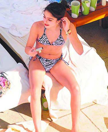 中新網12月9日電 “娜姐”麥當娜赴南美巡演,女兒蘿狄絲跟著去玩,在飯店泳池畔日光浴。今年12歲的她剛開始發育,卻學好萊塢女星穿上比基尼秀身材。