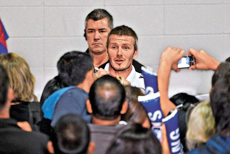 身為國際知名球星的貝克漢姆,平日有多名保鏢貼身保護。