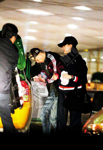 懷有身孕的董潔和潘粵明在機床準備去探親。