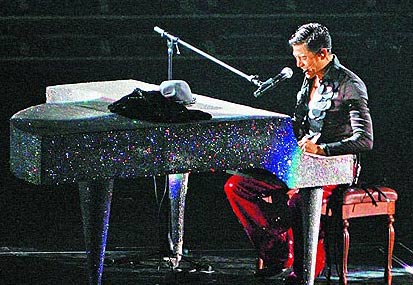 此外,他還苦練2個月鋼琴,展現動靜皆宜的誠意,他說:“我每天半夜洗完澡后練琴,是拚命記下來的!钡巴沓鯊棥度砜凇窌r,因太緊張頻出錯,他說:“后面彈不好,干脆重來好了。”沒想到他重彈了5遍,最后說:“彈鋼琴好難喔!你們以為我是周杰倫!”流露可愛一面。但他的國語隨緊張變得更不輪轉,他苦笑:“我好緊張!國語一直打‘折’!碑攬霰桓杳约m正是打“結”,他說:“我又回到18年前,我錯了!