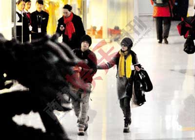 第二天凌晨5點(diǎn),記者就爬起床來趕到夏雨公寓外守候。早晨7點(diǎn)20分左右,一對(duì)穿著厚重棉衣的男女拖著行李箱走出大門打車。記者一眼就認(rèn)出他們就是夏雨和袁泉。兩人裝扮很有點(diǎn)情侶裝的感覺,都戴黑色毛線帽子、穿著鹿皮旅游鞋,一副出門遠(yuǎn)游的樣子。除了兩個(gè)大的旅行箱外,夏雨還抱著一個(gè)長長的裝著滑雪板的紅袋子。夏雨和袁泉一起把行李放進(jìn)出租車,然后上車朝機(jī)場方向駛?cè)ァ5竭_(dá)機(jī)場后,夏雨先下車推來行李車放行李箱,袁泉一只手幫夏雨推車,一只手挽住夏雨的胳膊。他們進(jìn)入機(jī)場大廳后先是辦理登機(jī)卡,然后托運(yùn)行李,最后還兌換外幣。整個(gè)過程中,兩人很少交流,即使說話也是低聲細(xì)語,但表情輕松愉快。因?yàn)榇髲d里很熱,夏雨脫下羽絨服,而袁泉馬上幫夏雨接住背包,袁泉還幾次自然地挽住了夏雨胳膊,無意間流露了情感。當(dāng)所有事宜辦好后,兩人并肩走進(jìn)登機(jī)入口,開始了他們甜蜜的北海道滑雪之旅。