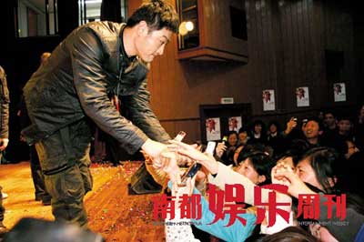 黃維德在舞臺上盡顯偶像風(fēng)采,中途更深入到群眾中去,和大學(xué)生握手互動,做男人難,做“小三男”其實(shí)不難。