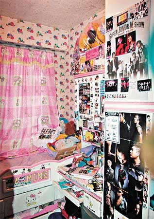 猝死少女的睡房貼有大量韓國組合SJ-M相片及飾物。