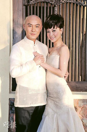 張衛健、張茜穿著菲律賓傳統結婚禮服拍結婚照。圖片均來自香港《明報》