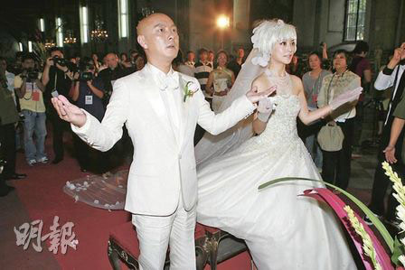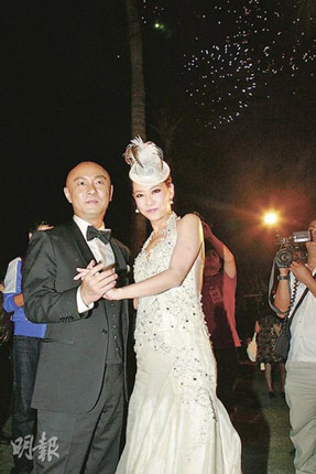 一對新人在酒店筵開18席,現(xiàn)場又大放煙花,歷時5分鐘,在浪漫的環(huán)境下,一對新人忍不住擁抱四目交投,兩度熱吻。結(jié)婚蛋糕共3層,外層的糖衣由粉紅玫瑰和100粒水晶點綴,花了兩日時間制成,價值600元美金,整個婚禮豪花約500萬港元。酒會前一對新人先接受訪問,新郎張衛(wèi)健坦言整個婚禮都十分緊張,還以為自己未讀完誓辭,就跟神父講還未讀完,但神父提他已讀完,余下是新娘子讀,兼且他又?jǐn)[烏龍幫太太戴錯戒指在右手。張衛(wèi)健說:“以前不信新娘結(jié)婚當(dāng)天是最漂亮的,原來是真的。”他稱婚后他首要學(xué)習(xí)如何白頭到老,他更羨慕一對老人家手拖手行街,希望將來都可以做到。