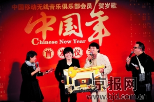 由成龍、譚晶、常石磊合唱的“賀年歌曲”《中國年》,上周末,舉行了無線音樂下載的首發式。在這個主題之外,成龍宣布將新人常石磊簽至自己公司,并且把今后成龍出品的電影音樂都交給這位新人參與制作。