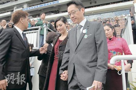 昨日是大年初七俗稱“人日”的喜慶日子,許家名下有3匹愛駒出戰沙田馬場,昨午李嘉欣與丈夫許晉亨十指緊扣步入馬場。一向身形纖瘦的嘉欣身穿紅色背心連身裙,腳踏兩吋高跟鞋,外表明顯比婚前發福,腹部的小肚腩亦若隱若現,加上全身鉆飾行頭,完全是一副幸福少奶奶模樣。