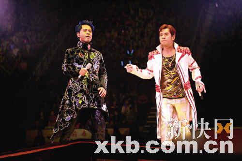 據香港媒體報道,譚詠麟、李克勤一連12場的“2009東亞運動會左麟右李演唱會”2月1日晚在香港紅館揭開序幕,成為紅館裝修重開后頭炮演唱會的歌手,吸引了不少嘉賓捧場,除阿倫母親、克勤與太太盧淑儀的父母外,還有霍震霆、民政事務局局長曾德成等。瘦身成功的“左麟右李”分別大秀健碩手臂及胸肌,令歌迷尖叫。阿倫更拿出金色斜袋邊唱邊狂收紅包,高興得連歌都忘了唱,相當搞笑。