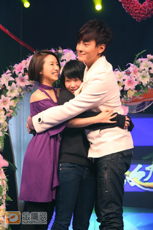 “耐力大比拼”之后,辛苦的兩位女生將獲得對應的“特殊”獎勵。比賽中雖然落敗了,但要一個女生背一個男生如此之久,也實屬不易,主持人張丹丹承諾滿足這位女生的一個要求。得知此消息后,這位女生尤為興奮的說出希望和鄭元暢、林依晨來一個“三明治之抱”。被夾在中間的女生美的合不攏嘴。