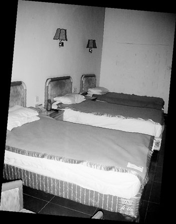 到了貴賓樓,大廳內(nèi)燈火通明,四個訓(xùn)練有素的保安把守大門。記者走進用餐區(qū),遇見了服務(wù)員小劉。她在貴賓樓干了四五年,看到明星對她來說是家常便飯,“前年拍《功夫之王》的時候,成龍、李連杰和劉亦菲都住在我們這里,我都見過。成龍帶了好幾個保鏢,還有一車的專用健身器材。”