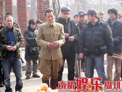 高群書的電影處女作《東京審判》曾獲得了廣泛的好評(píng),而在此之前他曾拍攝了大量的刑偵劇,其中最成功最有名的就是孫紅雷主演的《征服》。記者從劇組的拍攝通告上發(fā)現(xiàn)正月十六這一天拍攝的是王志文審訊女刺客的戲,而扮演女刺客的是《征服》的女主演劉威葳,去年劉威葳曾主演了王小帥的影片《左右》。兩年多前《征服》火爆熒屏的時(shí)候,就有圈內(nèi)人士告訴記者,劉威葳就是導(dǎo)演高群書的女友,兩人已相戀多年,早在高群書的那部主要由非職業(yè)人員出演的系列劇《命案十三宗》中劉威葳就出演過(guò)其中的一集。記者在片場(chǎng)看到劉威葳梳著三十年代流行的女性的“雞窩”發(fā)型,穿著一件破爛的染著“血跡”的裙子,據(jù)一位知情人士向記者透露,劉威葳扮演的女刺客雖然戲份不多,但很重要,影片的一開(kāi)場(chǎng)就是她刺殺日本要員的重頭戲,因?yàn)樗?fù)傷被俘,才意外使日軍懷疑內(nèi)部有間諜,從而展開(kāi)調(diào)查。