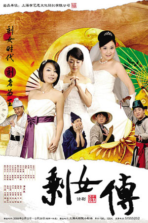 《剩女傳》是一出相當時髦且“雷人”的舞臺綜合藝術表演——缺乏嚴謹的戲劇結構,但是符合央視春晚小品的審美趣味。全劇塑造了三個大齡“剩女”形象——強勢的芳芳、愛錢的美麗和哲學博士書嘉,在現實生活中找不到對象,于是被愛神“發配”到古代,遇到了許仙、江洋大盜和捕快。如果她們能找到愛情就能回到現代。急于回到現代的芳芳,向許仙自我介紹:“我叫白素貞,街坊鄰居都叫我白娘子,你可以叫我娘子……”她脫口而出自己最愛的菜是“KFC”,許仙接口道:“開封菜!”美麗穿越時空后成為小青,卻說的一口東北話,看到許仙從帽子里拿出的傳家長命鎖上足有15克拉的鉆石后,竟然表示要和白素貞搶“男友”。許仙自己也說:“我被雷到了”……