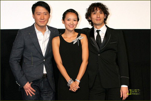 當天的章子怡身穿黑色禮服,胸前的蜻蜓配飾和頭發的配飾交相輝映,優雅高貴,銀色裙邊閃亮耀眼,配上招牌甜美笑容,看來對此次《梅蘭芳》日本之行很有信心。