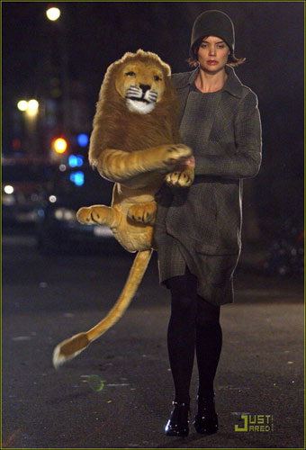 而7日還在紐約片場拍攝新片《多余的人》的阿湯嫂凱蒂·赫爾姆斯手抱大個獅子,十分搞笑
