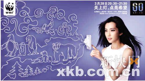 內地女星李冰冰近兩年除了成為國際一線品牌青睞的對象外,由于其形象健康,也受到環保組織的注意。日前,由世界自然基金會(簡稱wwf)發起的 “EarthHour”活動,就看中了李冰冰的國際號召力,將她從《風聲》的劇組里“借”了出來,于3月28日在北京鳥巢發起“熄燈一小時”活動。該活動一向具有廣泛的國際影響力,在澳大利亞更請到了好萊塢巨星妮可·基德曼擔任推廣大使。據悉在活動當晚,妮可·基德曼和李冰冰將分別出現在悉尼歌劇院和鳥巢中,并有機會用遠程通話的方式響應此次活動。