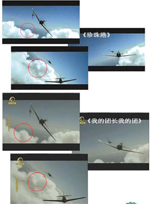 《團長》的一個飛機爆炸畫面,大量細節與《珍珠港》類似,只是爆炸地點從地面附近變換到云層中。