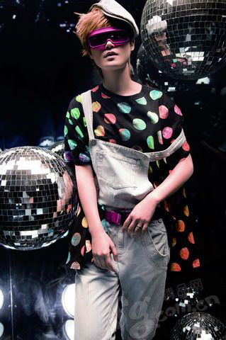 復古的條紋西服借鑒了Tuxdo的元素,像踏著鼓點、漫不經心的爵士舞伶;不規則的圓點襯衫搭配金屬太陽鏡,轉眼間搖身一變成了Disco舞場里的搶眼明星;簡單的T恤與緊質的運動褲,則仿佛小巷里熱愛復古舞步的搖擺小青年。