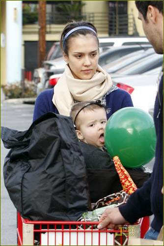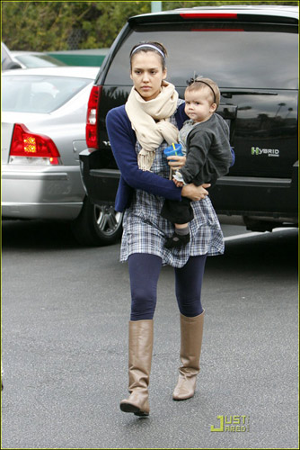 杰西卡·阿爾芭的甜美一向是毋庸置疑的,3月15日杰西卡·阿爾芭帶著女兒和丈夫一起去超市買東西,當天的杰西卡·阿爾芭身穿藍色褲襪配藍色格子外裙,頭帶藍色發卡,而手中的小美妞則是改黑色系搭配,黑色小褲子配黑色小鞋頭帶黑色發卡,看來母女都愛發卡啊。