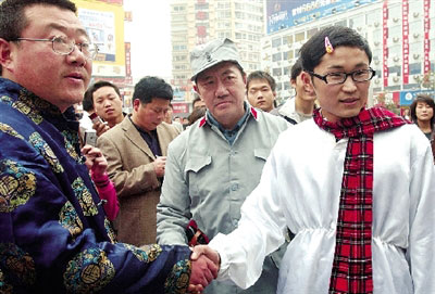 仨“山寨明星”聚會二七廣場