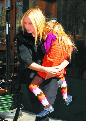 昨天,奧斯卡影后格溫妮斯·帕特洛帶著女兒和兒子,到紐約的“Build-a-Bear”玩具店為孩子們選購玩具。突然發現狗仔偷拍,格溫妮斯低頭垂下金發遮擋自己的臉,女兒則偎依在她懷中,用手死命捂住自己的臉。