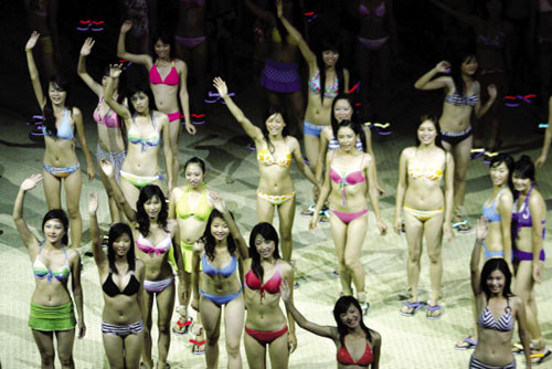 由張藝謀、王潮歌和樊躍“鐵三角”共同執(zhí)導(dǎo)的大型實(shí)景演出———《印象·海南島》,昨晚在海口市印象劇場(chǎng)首次公演。這是自《印象·劉三姐》、《印象·麗江》“雪山篇”和《印象·西湖》之后的第四個(gè)印象系列作品,也是張藝謀繼北京奧運(yùn)會(huì)和殘奧會(huì)之后推出的首部作品。因?yàn)檠莩鲋杏猩习倜琅展庠〉膱?chǎng)景,有人戲稱:“這是張藝謀在為之前出了‘海灘曬肉’事件的章子怡辯護(hù)!