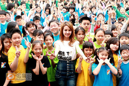 小朋友見到偶像到來,非常興奮,就連家長和老師也不分老小忙著拿起相機拍照,全校為之瘋狂,讓蔡依林在活動結(jié)束后,差點離不開校園。