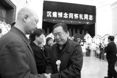 上午9時40分,遲重瑞、六小齡童和馬德華攜花圈來到現場。聚集在廣場上的影迷和記者立即將3人團團圍住。“他已修成金身羅漢,并將永遠留在喜愛他的觀眾心里。”六小齡童激動地說。六小齡童表示,閆懷禮在天堂和他們心同在,他們是生死之交。同時他和馬德華也透露,電視劇《吳承恩與西游記》將在今年暑期播出,這也是閆懷禮生前最關注的一件事。此外,《西游記》中的幾個好兄弟也一直在策劃《西游記》主題公園和電影《大鬧天宮》,他們將盡快落實,以告慰閆懷禮的在天之靈。