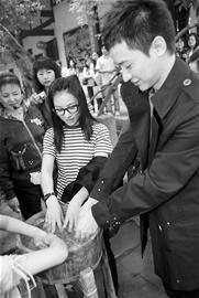 此時已中午12點過,劉璇還沒吃午飯。原以為她會走馬觀花隨便轉一圈,豈料每到一處,都仔細聽導游講解。在蘇宅的一處古井旁,專門擺了兩盆井水。她聽導游介紹用這里的水洗手,可以變聰明,立刻童心大發,把手伸到了盆里。一旁的王弢主動曝女友的光,“她最喜歡蘇軾的詞了,老早就說要來游覽三蘇祠,現在終于得償所愿!”被男友“出賣”的后果,就是劉璇被圍觀者要求背一首蘇軾的詞,她大大方方地說,“其實我更喜歡用唱的!”跟著就來了一首王菲曾經改編過的歌曲,“明月幾時有,把酒問青天……”雖然唱功比較業余,但奧運冠軍的親和,仍博得一陣掌聲。